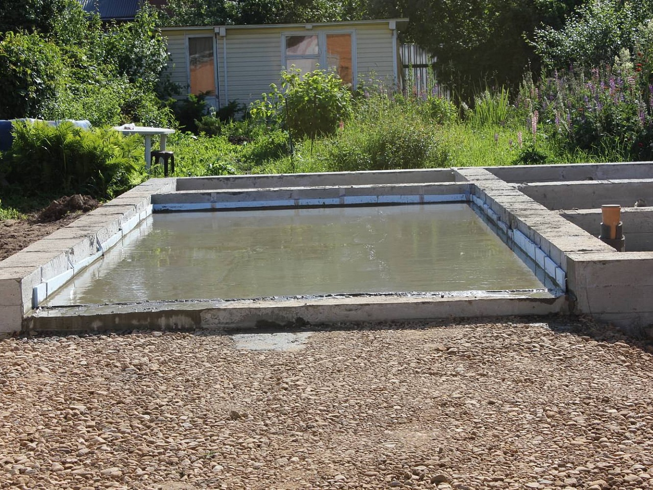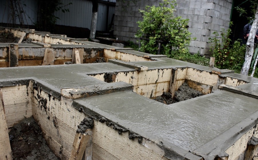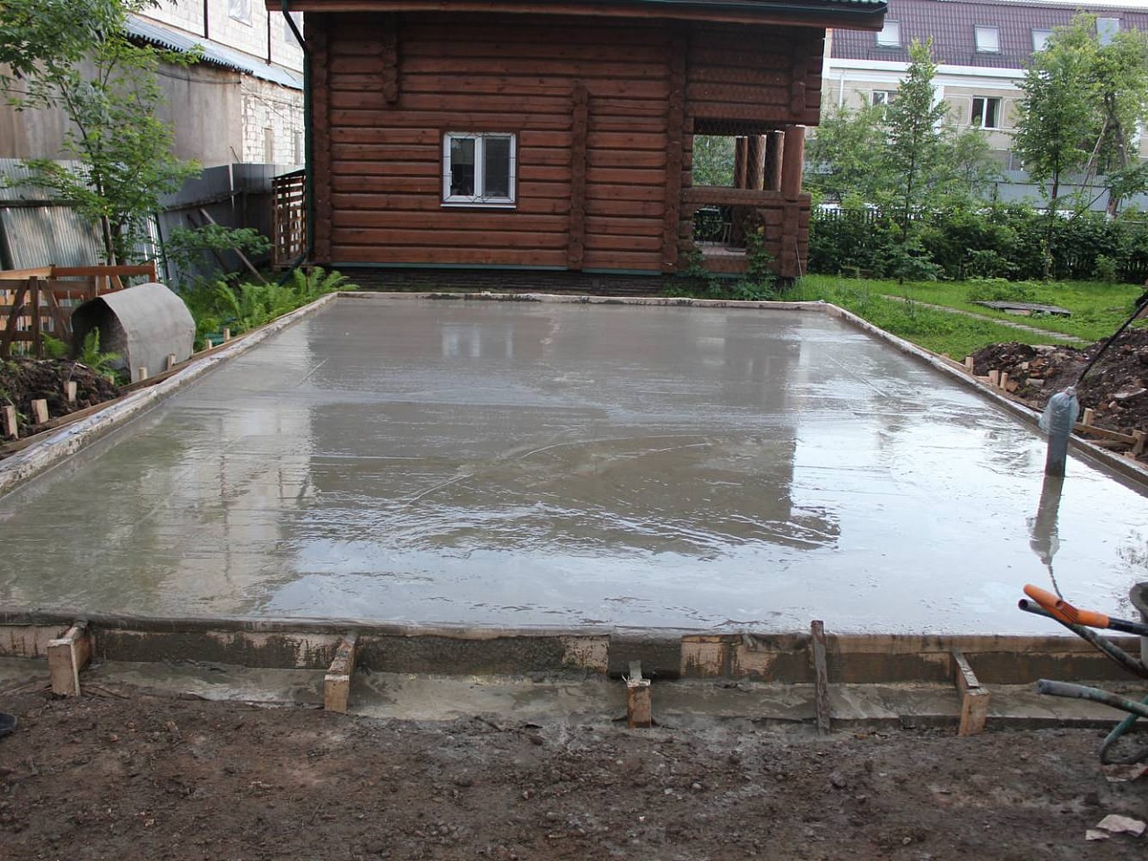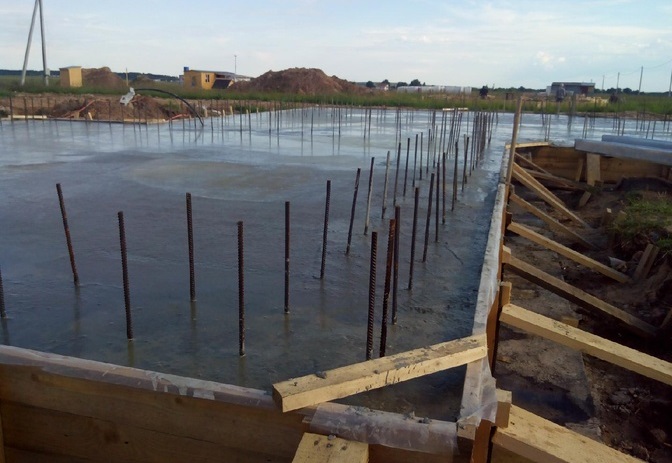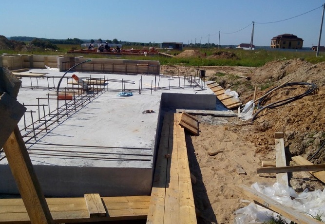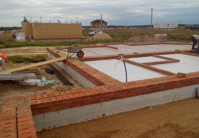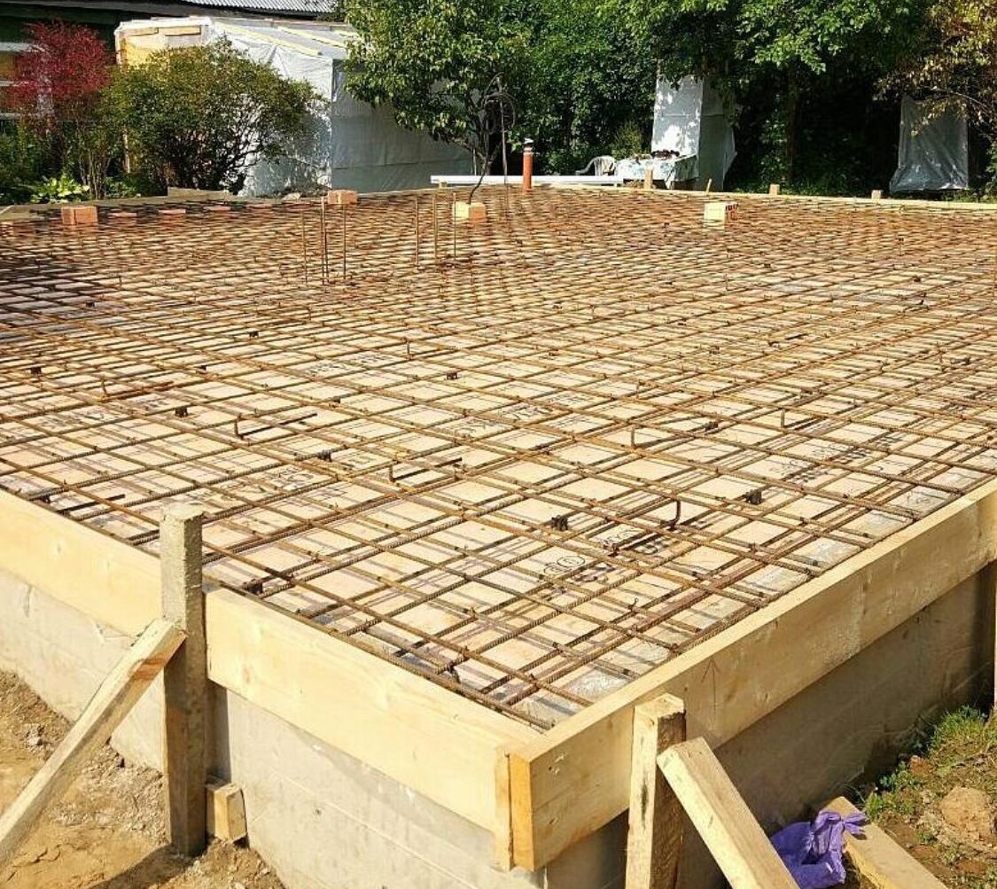 - Плитный – его строительство подойдет для любого здания из пеноблоков или кирпича. Заливка выполняется с армированием.