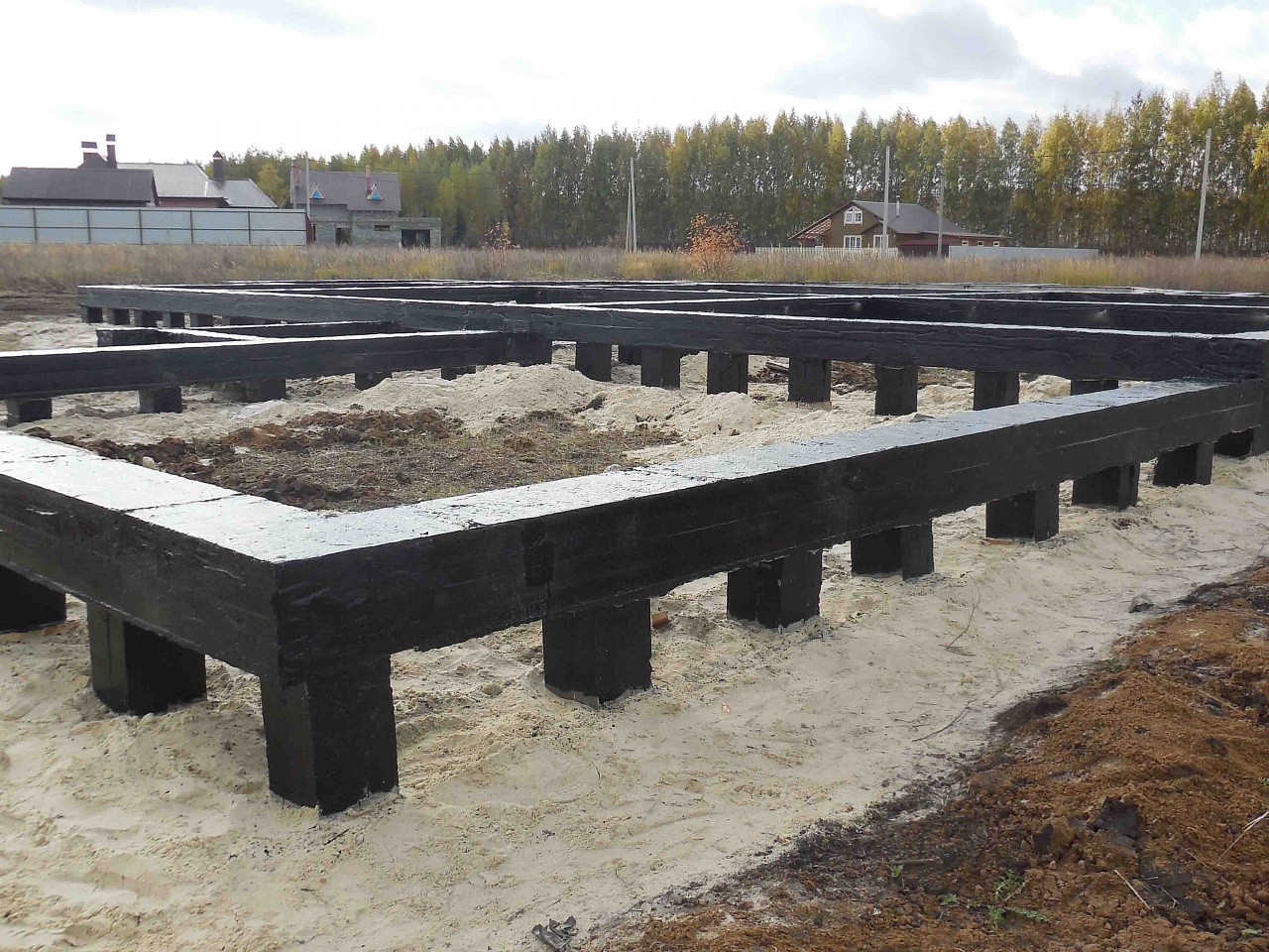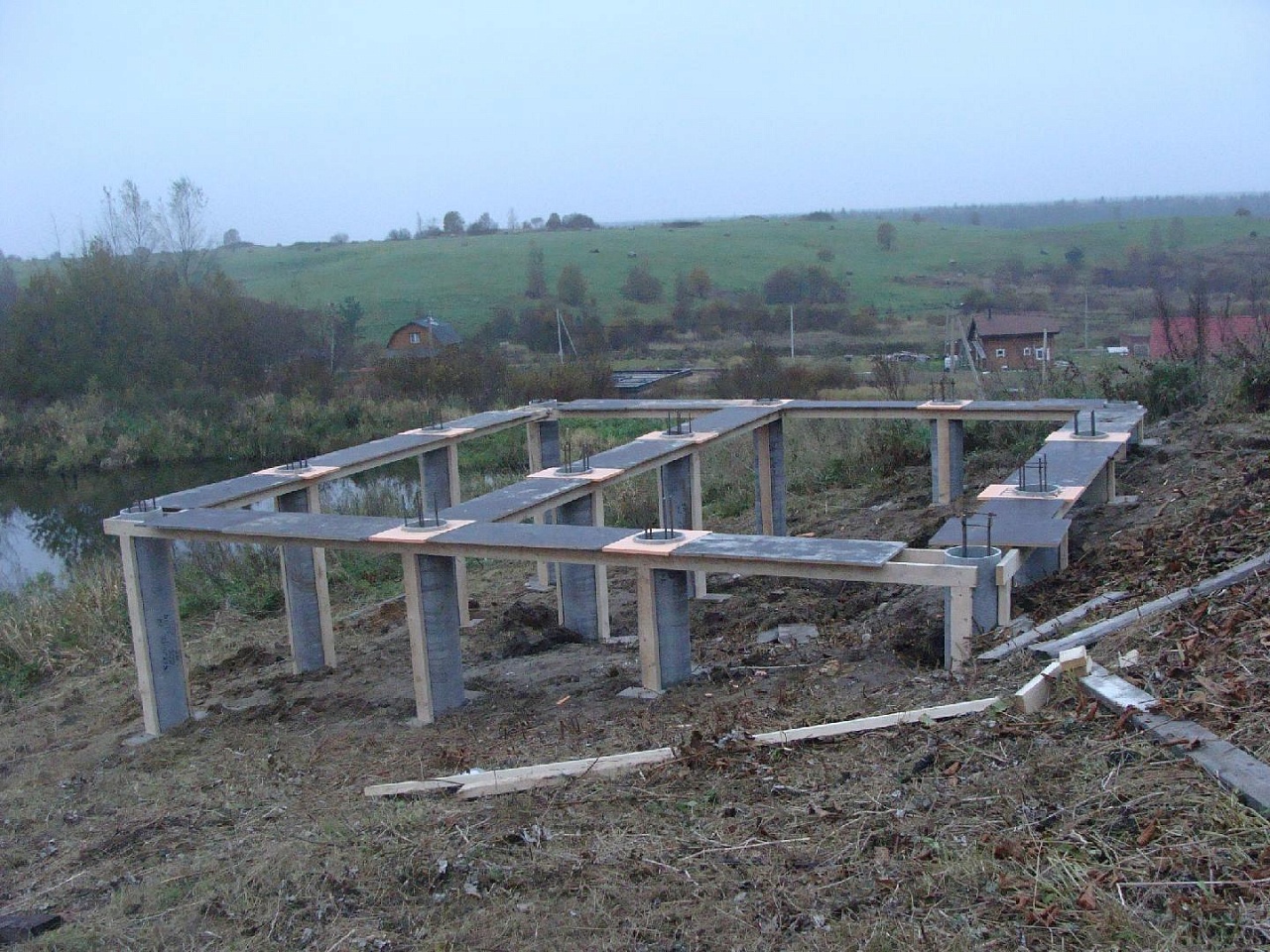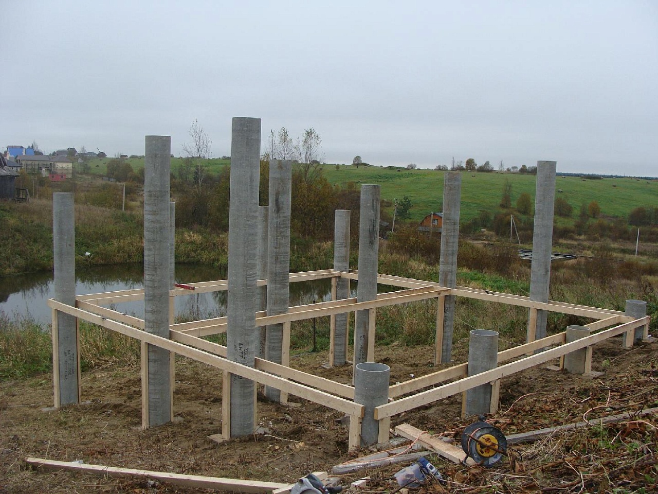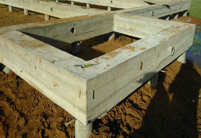 - Свайный ростверк - его могут залить, когда нужно сделать дом на ненадежных и малопрочных грунтах.